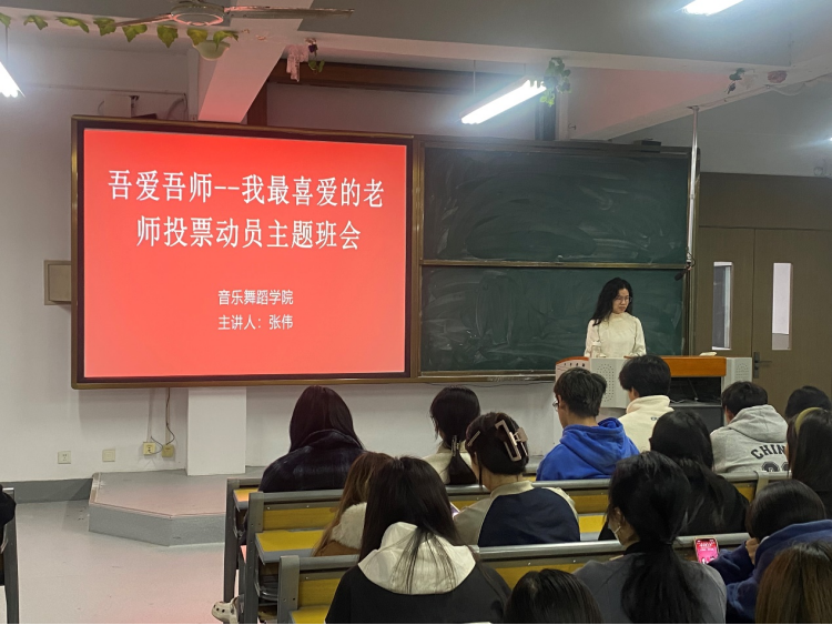 為加強我院學風建設,營造良好的尊師重教的學院文化氛圍,音樂舞蹈學院于10月23日開始舉辦“吾愛吾師-我最喜愛的老師”活動,由我院所有輔導員舉行關于此次投票班會并將投票鏈接發(fā)致班級群內(nèi),所有同學進行投票,從本學期給自己上課的老師中投票選出3名最喜愛的專業(yè)課老師和1名公共課老師。