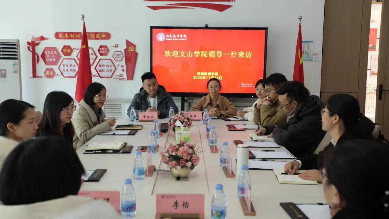 參觀結(jié)束后,雙方進(jìn)一步展開了座談。首先,鄭雯院長(zhǎng)對(duì)董院長(zhǎng)一行表示了熱烈的歡迎,并對(duì)我院學(xué)前教育專業(yè)建設(shè)的基本情況進(jìn)行了介紹;隨后雙方就人才培養(yǎng)、課程體系和課程建設(shè)、實(shí)驗(yàn)實(shí)訓(xùn)條件建設(shè)、校外實(shí)踐教學(xué)基地和協(xié)同育人平臺(tái)建設(shè)以及師資隊(duì)伍建設(shè)和卓越學(xué)生培養(yǎng)等問(wèn)題進(jìn)行了深入、細(xì)致的交流和分享。我院專業(yè)負(fù)責(zé)人張青瑞老師、教師教育教研室主任莊軍紅老師,分別介紹和分享了我院在專業(yè)建設(shè)、人才培養(yǎng)和課程建設(shè)方面的成果和經(jīng)驗(yàn)。文山學(xué)院領(lǐng)導(dǎo)對(duì)我院的相關(guān)工作給予了高度評(píng)價(jià),并表示將借鑒我院經(jīng)驗(yàn),進(jìn)一步推進(jìn)文山學(xué)院在人才培養(yǎng)方面的工作。