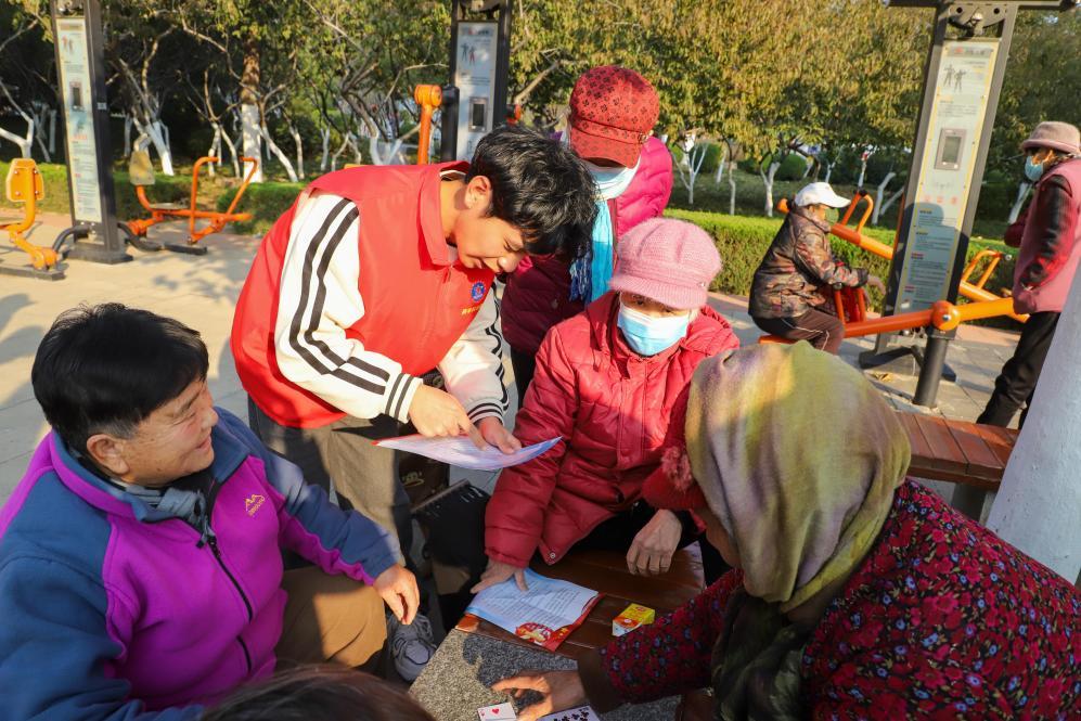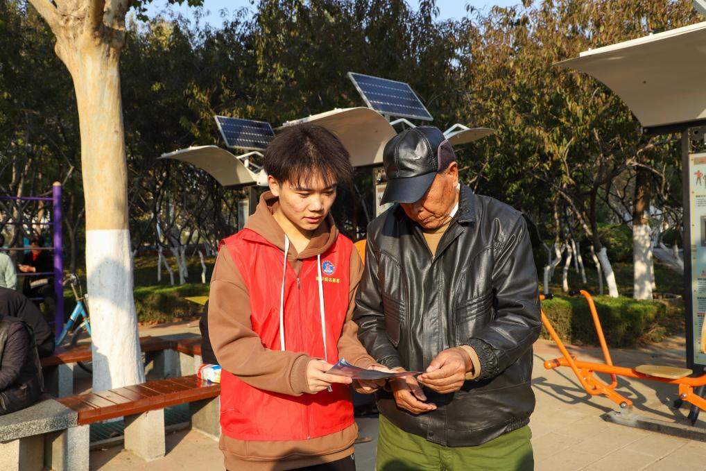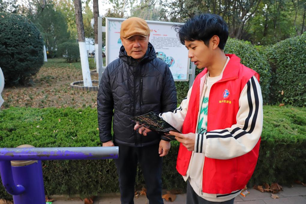 志愿者們與社區(qū)居民宣傳反詐知識(shí)