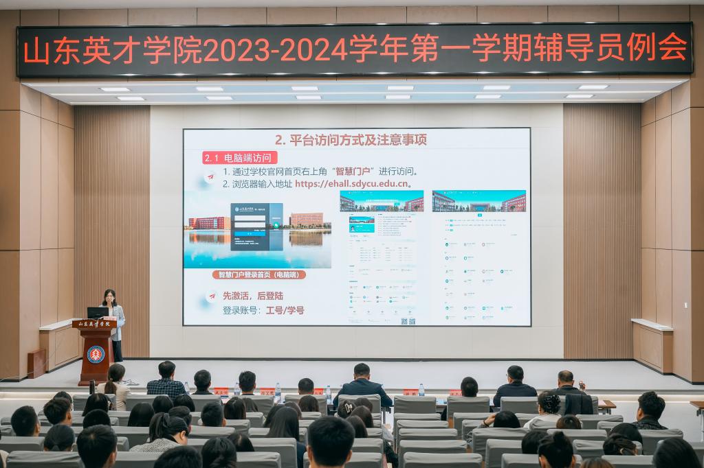 山東英才學(xué)院2023-2024學(xué)年第一學(xué)期輔導(dǎo)員例會在慷慨激昂的《英才之歌》中圓滿結(jié)束。