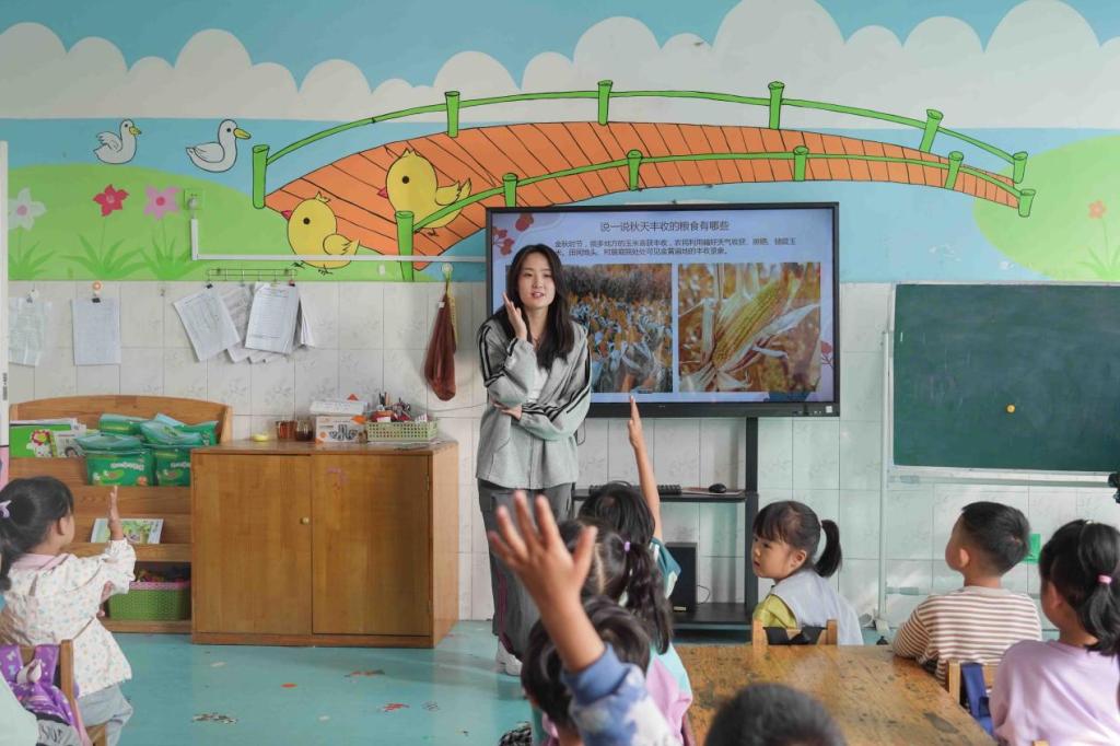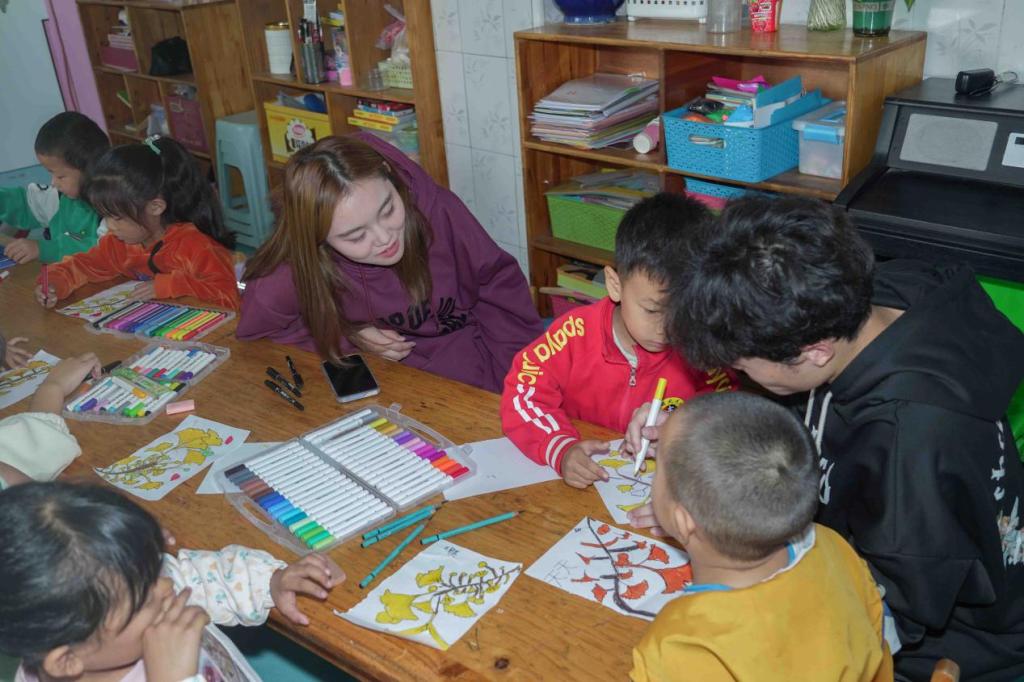 陣陣秋風(fēng)吹落了紅的葉、黃的葉,吹動了媽媽的裙角,吹來了水果的甜香。秋天蘊含了廣闊的幻想和探索空間,志愿者們通過播放短片、教授繪畫的形式,開展“秋葉之韻”為主題的教學(xué)活動,引導(dǎo)孩子們感受、發(fā)現(xiàn)和欣賞大自然中美的事物。