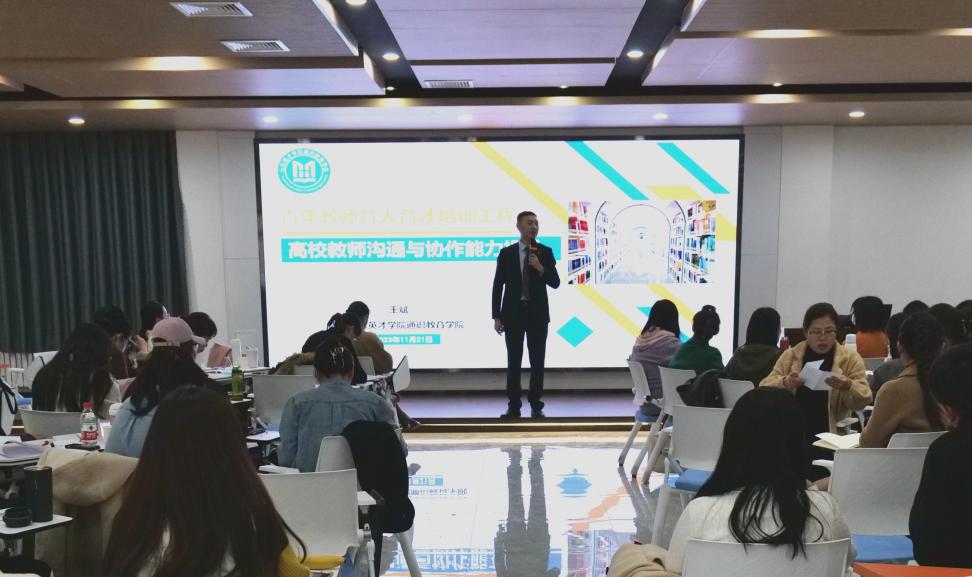 為進(jìn)一步提高我院青年教師的職業(yè)素養(yǎng),打造一支具有高度協(xié)作精神、高效執(zhí)行力和創(chuàng)新能力的教育教學(xué)團(tuán)隊(duì),賦能通識(shí)教育高質(zhì)量發(fā)展,通識(shí)教育學(xué)院近日邀請(qǐng)公共關(guān)系與教練型領(lǐng)導(dǎo)力培訓(xùn)專家、山東省職業(yè)技能等級(jí)評(píng)估專家王斌舉辦了“高校教師職業(yè)化素養(yǎng)與高績(jī)效團(tuán)隊(duì)建設(shè)”的主題培訓(xùn)。通識(shí)教育學(xué)院全體教師參訓(xùn)。