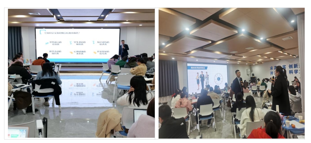 在本次培訓(xùn)中,王斌老師為我們?cè)敿?xì)解讀了高校教師職業(yè)化素養(yǎng)的重要性,以及如何通過(guò)團(tuán)隊(duì)合作提高工作績(jī)效。他從職業(yè)思維、基本原則、立德樹(shù)人的核心和重點(diǎn)、工作單位的定義、新時(shí)期高校教師的定義和高校優(yōu)秀教師的特征六個(gè)方面,為我們揭示了高校教師職業(yè)化素養(yǎng)的全貌。首先,王斌老師指出,作為高校教師,我們需要具備職業(yè)思維,即以專業(yè)的態(tài)度和敬業(yè)的精神來(lái)對(duì)待教學(xué)工作。同時(shí),我們要嘗試換位思考,基于學(xué)生的思維特點(diǎn)進(jìn)行課堂設(shè)計(jì)。此外,通過(guò)小組討論、跨組交流等活動(dòng)形式,現(xiàn)場(chǎng)老師們一起對(duì)如何定義新時(shí)期高校教師角色、高校優(yōu)秀教師的特征等問(wèn)題進(jìn)行了討論。王斌老師還通過(guò)案例分析和實(shí)戰(zhàn)演練的方式,讓參訓(xùn)教師們深入了解了高績(jī)效團(tuán)隊(duì)的特征、建設(shè)方法和運(yùn)行機(jī)制,鼓勵(lì)教師們積極參與到團(tuán)隊(duì)建設(shè)活動(dòng)中來(lái),通過(guò)合作創(chuàng)新,提升教學(xué)質(zhì)量和科研水平。在講座的最后,王斌老師總結(jié)道,高校教師的職業(yè)化素養(yǎng)不僅包括專業(yè)知識(shí)、教學(xué)技能,更包括良好的職業(yè)道德、團(tuán)隊(duì)合作精神等,我們?cè)谌粘9ぷ髦幸⒅刈晕姨嵘?,通過(guò)團(tuán)隊(duì)合作來(lái)提高工作績(jī)效,為培養(yǎng)優(yōu)秀的人才貢獻(xiàn)自己的力量。