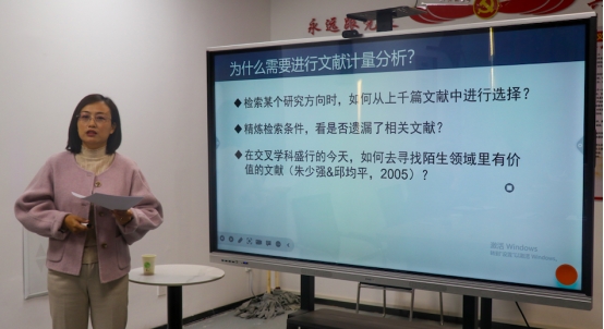 本次工作坊主題為“文獻(xiàn)綜述可視化分析軟件”,旨在幫助教師們更好地理解和應(yīng)用文獻(xiàn)綜述可視化分析軟件,提高文獻(xiàn)綜述的質(zhì)量和效率。蓋美娟老師作為主講人,分享了如何運(yùn)用文獻(xiàn)綜述可視化分析軟件進(jìn)行文獻(xiàn)計量分析的方法和特點(diǎn),以及如何選取合適的分析指標(biāo),蓋老師通過具體的案例以及演示,為教師們提供了一個深入了解和掌握這一新型研究工具的機(jī)會。