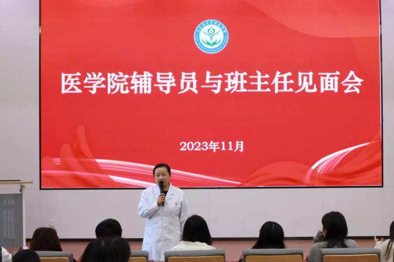 為推進(jìn)學(xué)習(xí)貫徹習(xí)近平新時(shí)代中國(guó)特色社會(huì)主義思想主題教育走深走實(shí),深入交流研討學(xué)院學(xué)生思想政治工作,落實(shí)就業(yè)育人要求,全面提升學(xué)院人才培養(yǎng)質(zhì)量,共同促進(jìn)學(xué)生的學(xué)業(yè)進(jìn)步,醫(yī)學(xué)院召開(kāi)2023級(jí)輔導(dǎo)員和班主任見(jiàn)面會(huì),參與人員有教學(xué)副院長(zhǎng)王世芳、2023級(jí)輔導(dǎo)員和班主任,會(huì)議由黨總支副書(shū)記武玉興主持。