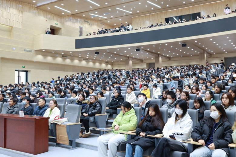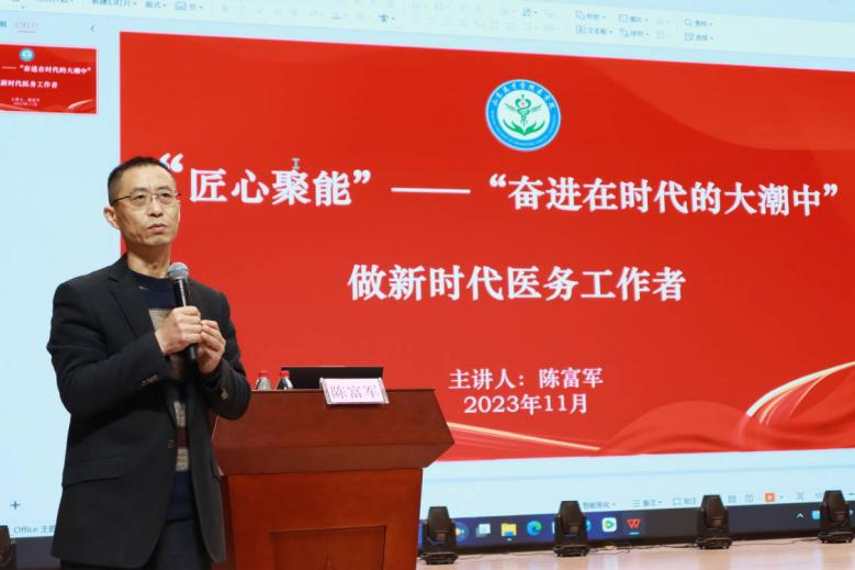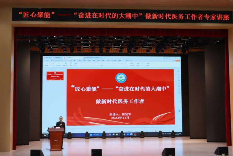 為引導(dǎo)學(xué)生深入學(xué)習(xí)貫徹習(xí)近平新時(shí)代中國(guó)特色社會(huì)主義思想,不斷推動(dòng)黨的二十大精神在我院落地生根,進(jìn)一步引領(lǐng)學(xué)生能在“新時(shí)代”中踔厲奮進(jìn)。11月28日,醫(yī)學(xué)院于山東英才學(xué)院音樂(lè)廳舉辦“匠心聚能”——“奮進(jìn)在時(shí)代的大潮中”做新時(shí)代醫(yī)務(wù)工作者專(zhuān)家講座,22、23級(jí)本專(zhuān)科全體在校生參加,醫(yī)學(xué)院教學(xué)副院長(zhǎng)王世芳、團(tuán)委書(shū)記劉晴主持,并特邀濟(jì)南市槐蔭區(qū)人民醫(yī)院黨委副書(shū)記陳富軍主講。