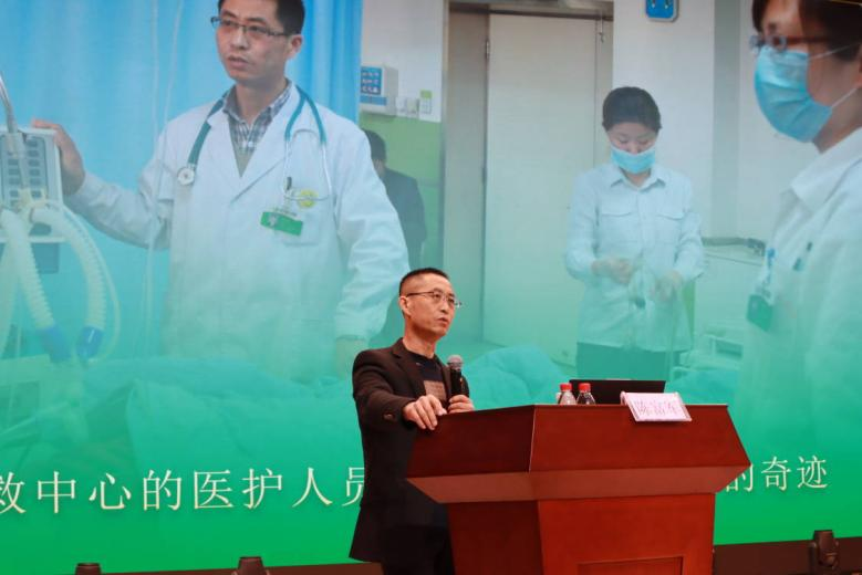 講座初始,陳富軍書(shū)記分別從工作經(jīng)驗(yàn)、醫(yī)院中的動(dòng)人事跡、武漢抗疫40天以及百日方艙攻堅(jiān)戰(zhàn)四個(gè)方面向同學(xué)們進(jìn)行了分享,并告訴同學(xué)們每一代人都會(huì)面臨屬于自己的困境,但他們無(wú)一例外都秉持著一種精神:堅(jiān)持著自己熱愛(ài)的事業(yè)。