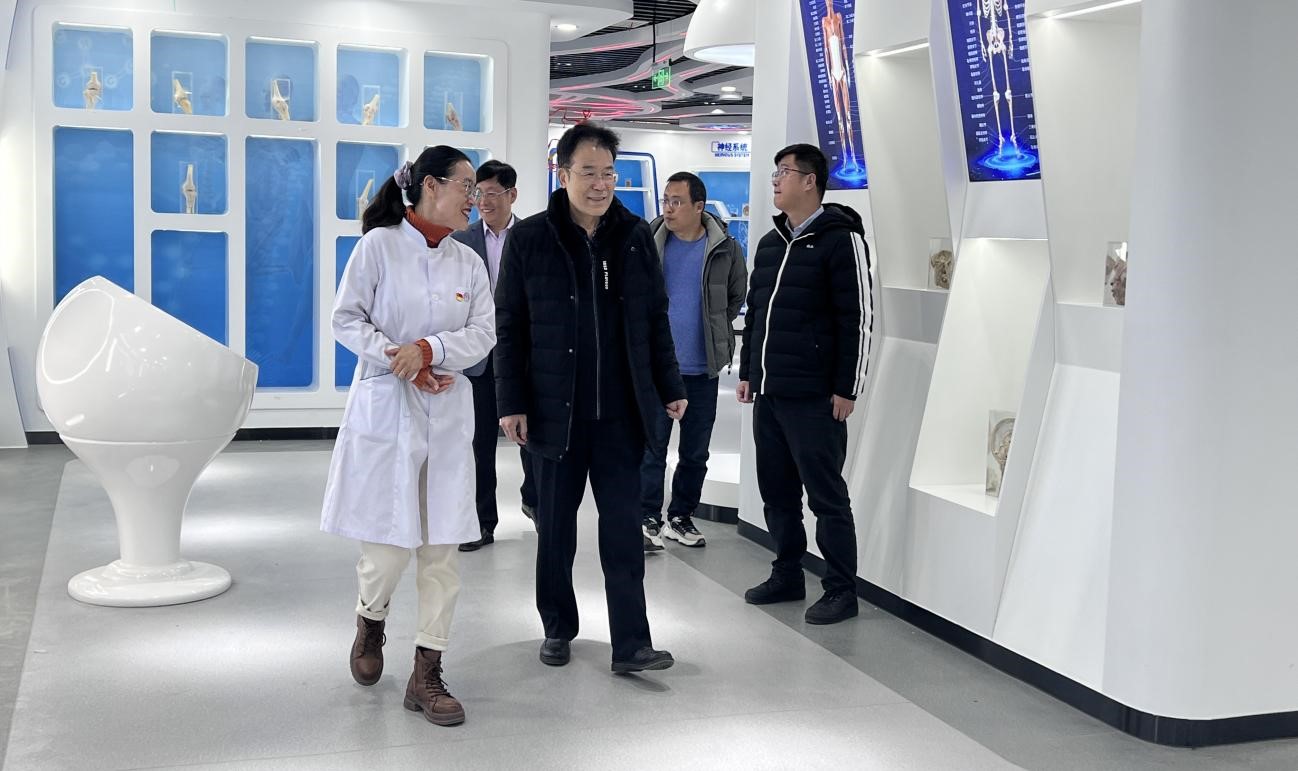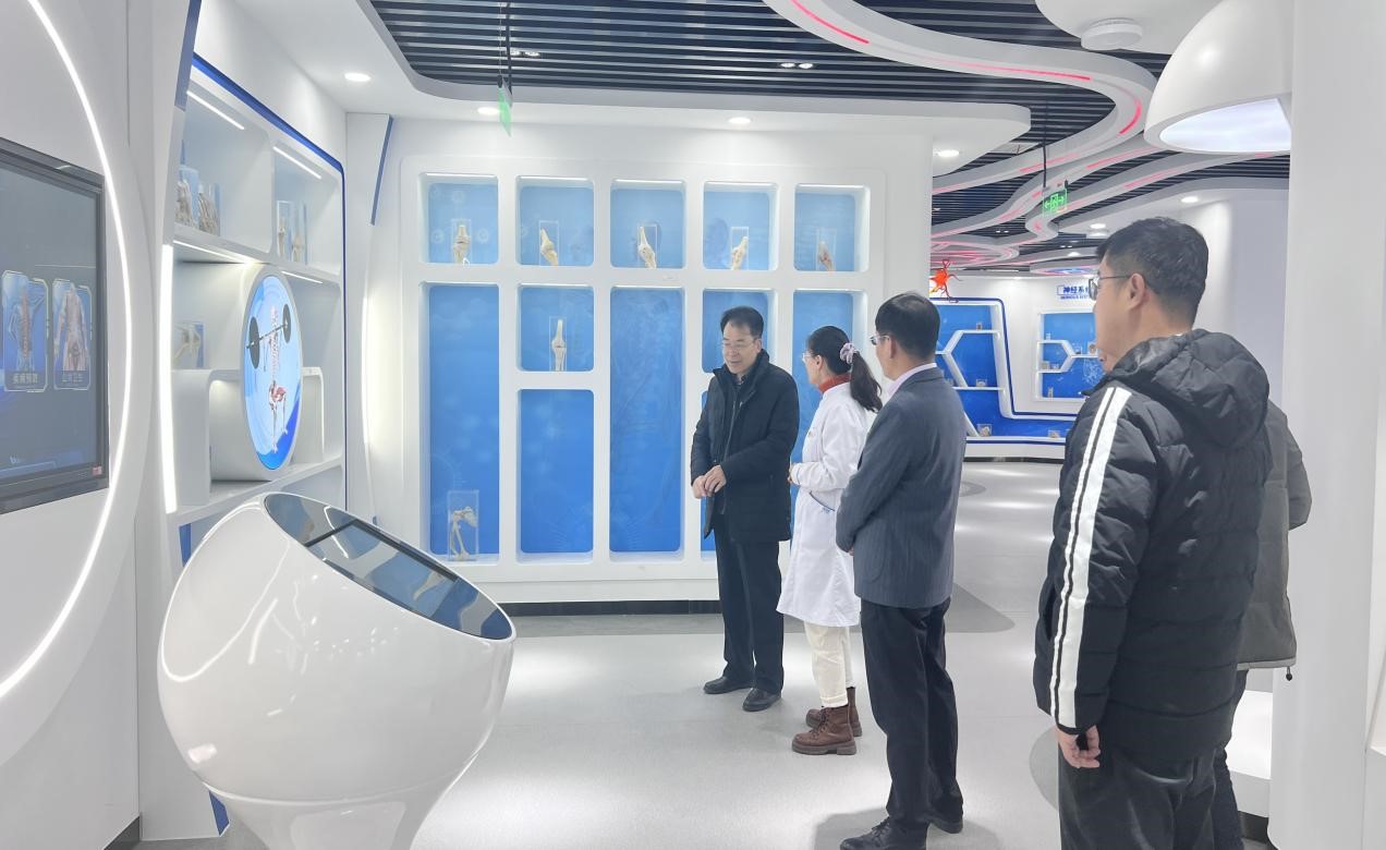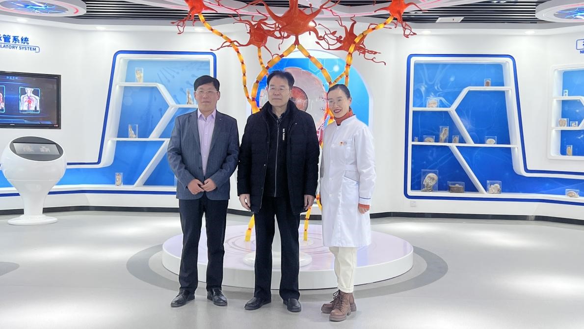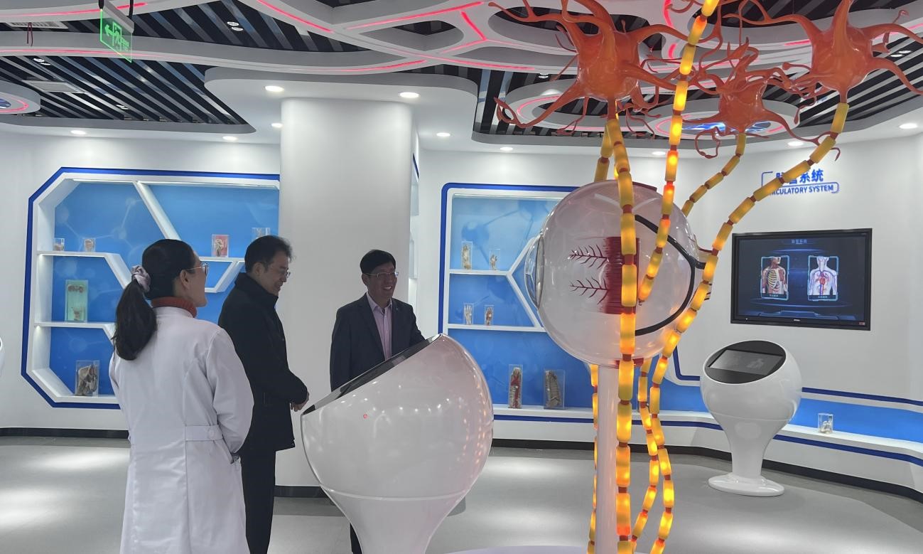 王輝主任對于丁自海教授隊伍的到來表示熱烈歡迎。在王輝主任的陪同下,丁自海教授逐步參觀了生命科學館的各個展區(qū)。展區(qū)展示了我院在生命科學領域的研究成果和實踐成果,神經(jīng)系統(tǒng)、呼吸系統(tǒng)、運動系統(tǒng)等各個系統(tǒng)的展示。丁教授對生命科學館的布局及展品的質量給予了高度評價,表示館內設備具有很強的科學性和趣味性,能很好地激發(fā)學生們對生命科學及醫(yī)學專業(yè)的興趣和熱情。