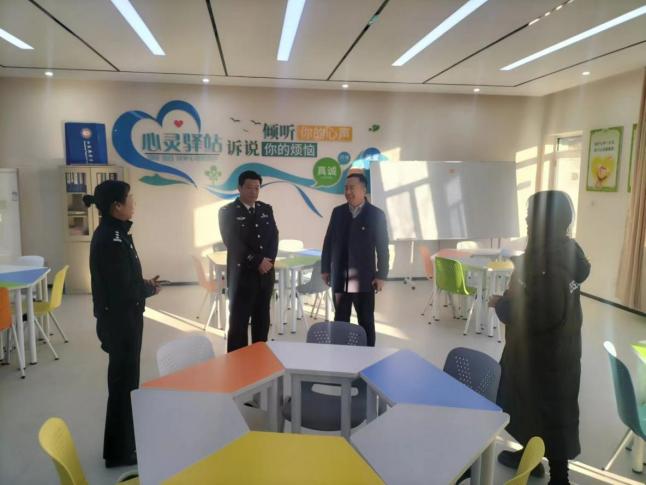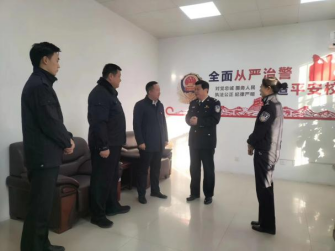培訓(xùn)結(jié)束后,陳勝大隊(duì)長(zhǎng)、王穎科長(zhǎng)等領(lǐng)導(dǎo)在高奎主任陪同下調(diào)研學(xué)校安全穩(wěn)定工作,到學(xué)校警務(wù)室建設(shè)、心理健康教育中心和校園監(jiān)控中心等地考察指導(dǎo),交警大隊(duì)領(lǐng)導(dǎo)對(duì)學(xué)校安全工作給予充分肯定。