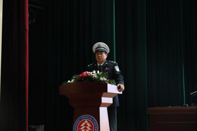 為貫徹落實(shí)上級(jí)教育主管部門和公安機(jī)關(guān)加強(qiáng)交通安全的指示精神,營(yíng)造正規(guī)、有序、文明、安全的校園交通環(huán)境,切實(shí)提升廣大師生交通安全意識(shí),提高交通安全防范能力,預(yù)防交通事故發(fā)生,山東英才學(xué)院北校區(qū)12月1日下午在大學(xué)生活動(dòng)中心舉辦2023年交通安全知識(shí)專題講座,北校區(qū)綜合辦公室特邀濟(jì)南市公安局交通警察支隊(duì)起步區(qū)大隊(duì)大隊(duì)長(zhǎng)陳勝,綜合科副科長(zhǎng)王穎到校指導(dǎo)工作,并由起步區(qū)大隊(duì)安全宣傳員馮慶昊警官作“文明交通,你我同行”為主題的安全教育講座,北校區(qū)綜合辦公室副主任、學(xué)生工作處副處長(zhǎng)杜志玉,安保干部、各二級(jí)學(xué)院師生代表,餐飲、物業(yè)、商業(yè)、物流、校車司機(jī)等700余人參加此次活動(dòng)。講座由北校區(qū)綜合辦公室主任高奎主持。