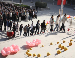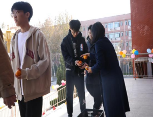 活動(dòng)開(kāi)始,考研學(xué)子們排隊(duì)依次邁向寓意著“上岸”的臺(tái)階,伴隨陣陣?guó)Q鼓聲,鼓舞士氣,踏過(guò)節(jié)節(jié)樓梯,希望學(xué)子們能夠披荊斬棘、乘風(fēng)破浪、一舉成“研”;樓梯兩側(cè)擺放的柚子寓意加“柚”,研途雖艱,然上下求索、不畏艱難者,必同風(fēng)而起,扶搖直上,期望莘莘學(xué)子能夠以夢(mèng)為馬,揮筆為鞭,不負(fù)韶華;當(dāng)?shù)竭_(dá)“勝利的彼岸”時(shí),各學(xué)院輔導(dǎo)員依次為學(xué)子們送上橙子和蘋果,寓意心想事“橙”、“蘋”步青云,表達(dá)了對(duì)考研學(xué)子的美好祝愿。在發(fā)放禮物過(guò)程中,輔導(dǎo)員們親切問(wèn)候、細(xì)細(xì)詢問(wèn)學(xué)子們最近的學(xué)習(xí)和生活狀態(tài),鼓勵(lì)學(xué)生要放松心態(tài),不斷溫習(xí)、鞏固知識(shí),做好最后的沖刺。一個(gè)個(gè)美好的寓意,一句句關(guān)切的話語(yǔ),讓同學(xué)們感受到了來(lái)自學(xué)校滿滿的愛(ài)和祝福。