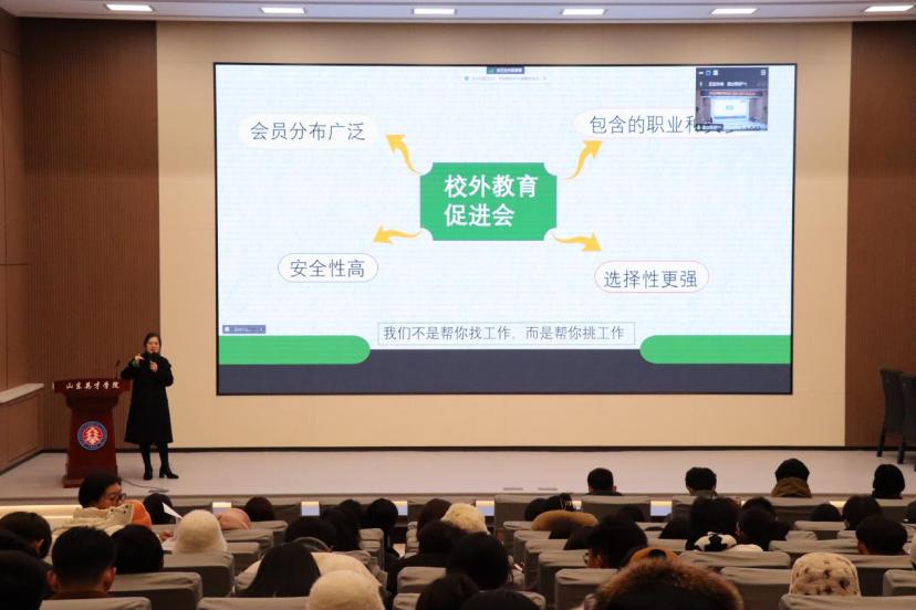 宣講會上,山東盛放文化教育集團(tuán)有限公司和魯南制藥集團(tuán)負(fù)責(zé)人分別以PPT的方式介紹了單位情況,其中山東盛放文化教育集團(tuán)有限公司劉老師重點(diǎn)講到公司現(xiàn)有480余家幼兒園和教培機(jī)構(gòu),聚焦各種優(yōu)秀資源,需求大量音樂和舞蹈專業(yè)教師,并希望我院畢業(yè)生踴躍報(bào)名并參與面試;魯南制藥集團(tuán)潘經(jīng)理介紹了公司規(guī)模、業(yè)務(wù)板塊以及對于音樂、舞蹈專業(yè)畢業(yè)生的需求,并希望同學(xué)們能明確定位,規(guī)劃好自己的職業(yè)路線,做出正確的求職決策。