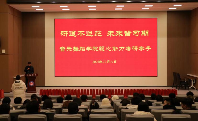 為進一步激發(fā)學生考研斗志,助力考研學子跨越“最后一公里”,12月11日晚,音樂舞蹈學院在報告廳舉行暖心助力考研學子活動,學院直屬黨支部書記祝景朋、畢業(yè)班級輔導員以及2024屆全體考研學生參加了活動。