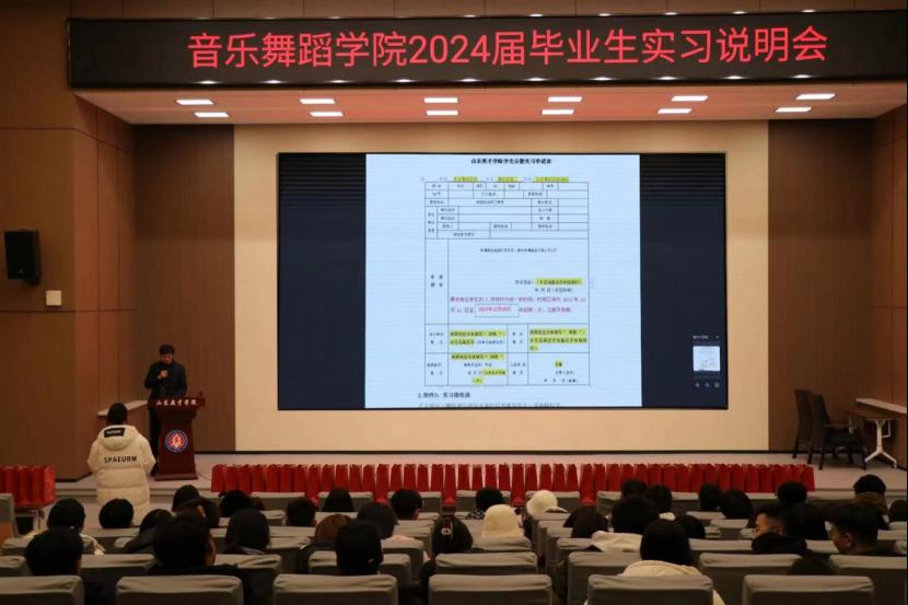 為確保2024屆畢業(yè)生實(shí)習(xí)工作順利開(kāi)展,引導(dǎo)學(xué)生做好實(shí)習(xí)前的各項(xiàng)工作,解答學(xué)生實(shí)習(xí)政策方面的疑惑,12月13日,音樂(lè)舞蹈學(xué)院在學(xué)術(shù)報(bào)告聽(tīng)召開(kāi)了畢業(yè)實(shí)習(xí)說(shuō)明會(huì),畢業(yè)班級(jí)輔導(dǎo)員以及2024屆全部本科畢業(yè)生參加。