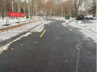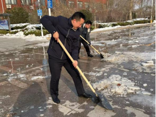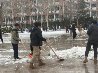 隨著一場暴風雪席卷濟南府,整座城市很快被白雪覆蓋,雪景雖然美麗,但厚厚的積雪極大地阻礙了我校師生的出行,北校區(qū)第一時間啟動應(yīng)急響應(yīng),雪未停便組織人員進行積雪清理,但由于氣溫驟降,地面結(jié)冰速度極快,這也給全校師生造成了諸多不便。12月18日15:30,北校區(qū)積極組織開展“破冰行動”,由北校區(qū)十個社團組成的學生志愿者“大軍”和老師們領(lǐng)取工具后便整齊有序地投入到除雪破冰工作中,利用雪鏟、鐵鍬、掃帚等工具相互配合、協(xié)同作戰(zhàn),一鼓作氣地將學校主干道殘留積雪清掃干凈,一條條明亮的道路便呈現(xiàn)在大家眼前。學生志愿者和老師們用飽滿的熱情、不懼嚴寒的心態(tài)開拓出一條條“平安路”,最大限度地消除了師生出行的安全隱患,維護了校園的平安和諧。