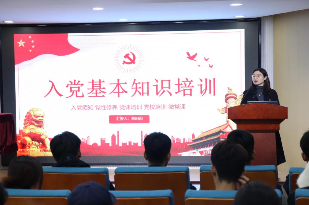 12月6日,組織員薛陽陽對入黨積極分子進行入黨基本知識的培訓,她講述了入黨的相關內容與規(guī)定,強調了入黨積極分子要嚴格要求自己,認真學習,積極工作,用自己的實際行動來踐行自己入黨的愿望,爭取早日加入中國共產(chǎn)黨。