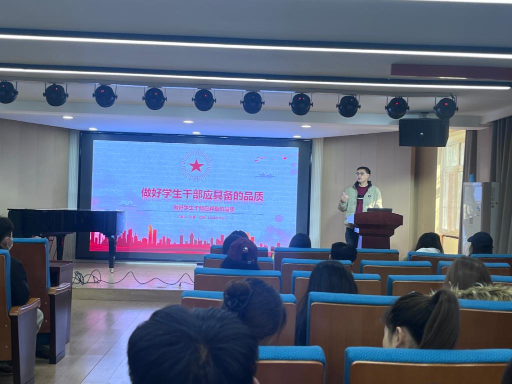 12月5日,統(tǒng)戰(zhàn)委員孫夏作了一場《如何做一名合格的學生干部》的專題報告,通過一個個鮮活的案例闡述學生干部應具備的品質,進一步提高學生干部的綜合素質與能力,改進學生干部學習與工作作風。作為學生干部要充分發(fā)揮帶頭模范作用,戰(zhàn)斗堡壘作用。學生干部作為黨的后備力量以及國家重要的人才資源,更應該為同學們做好帶頭表率作用。