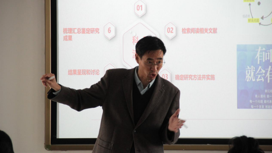 講座中,樊家進老師還給同學們傳授了一些團隊交流的小技巧,并鼓勵同學們在課題研究的過程中多觀察、勤思考、多留心、勤查閱,為以后的課題研究和論文寫作打下基礎。