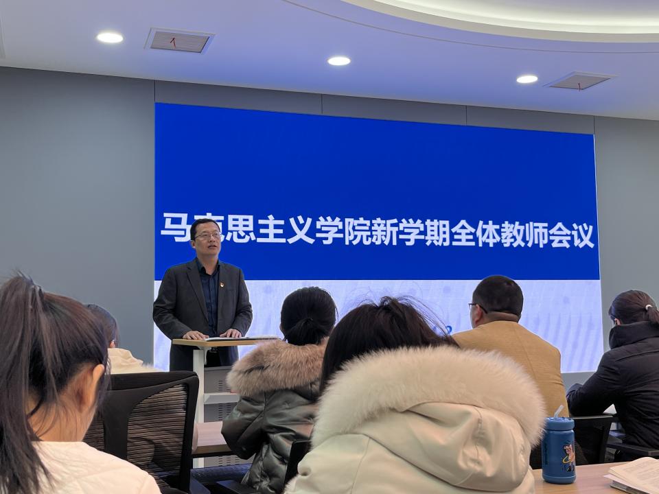 新學(xué)期,新起點(diǎn)。馬克思主義學(xué)院于2月27日上午召開(kāi)了全體教師會(huì)議,會(huì)議由李朝源院長(zhǎng)主持。李朝源院長(zhǎng)在會(huì)上總結(jié)了過(guò)去一學(xué)期學(xué)院各項(xiàng)工作的完成情況,展望了未來(lái)一學(xué)期的新景象。