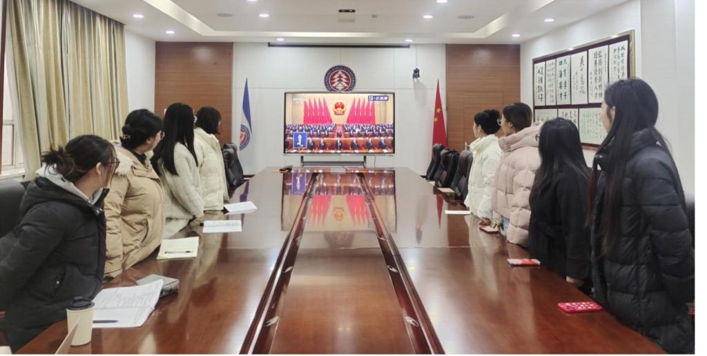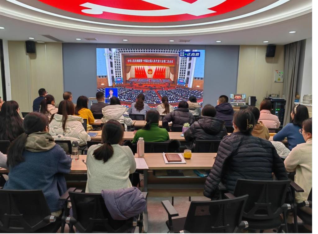 3月5日上午9時,第十四屆全國人民代表大會第二次會議在北京人民大會堂隆重開幕。此次大會是在我國全面建設社會主義現(xiàn)代化國家的關(guān)鍵時期召開的一次十分重要的會議,全國各族人民代表肩負著人民的重托,共商國是,共謀發(fā)展。馬克思主義學院組織南北校區(qū)全體教師集體觀看了開幕式的盛況。