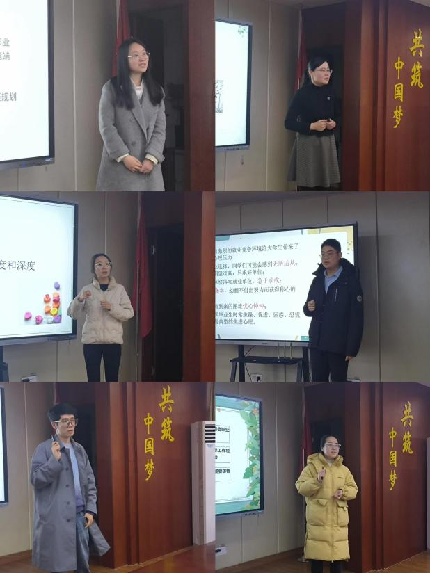 教研室資深老師們對(duì)各位青年教師們的課堂呈現(xiàn)進(jìn)行了詳細(xì)點(diǎn)評(píng)并參與到磨課中來(lái),紛紛表示大家一起交流探討,進(jìn)行頭腦風(fēng)暴,互相借鑒、共同思考,迸發(fā)靈感的火花,對(duì)每個(gè)人的教學(xué)能力都有促進(jìn)作用。鄭士奇老師提出,案例的使用應(yīng)更偏向于當(dāng)下熱點(diǎn)以及學(xué)生興趣和切實(shí)的需求,適當(dāng)增強(qiáng)PPT版面的設(shè)計(jì)感,激發(fā)學(xué)生興趣;唐帥老師認(rèn)為課堂設(shè)計(jì)應(yīng)根據(jù)學(xué)生的年級(jí)、專業(yè)進(jìn)行適當(dāng)調(diào)整,如不同專業(yè)的學(xué)生可展示與學(xué)生專業(yè)相關(guān)的就業(yè)數(shù)據(jù)和崗位推薦;鞠雯燕老師建議青年教師應(yīng)加強(qiáng)對(duì)國(guó)家就業(yè)政策的學(xué)習(xí)和理解,避免出現(xiàn)對(duì)學(xué)生的誤導(dǎo),在課堂上提供盡可能準(zhǔn)確、全面的指導(dǎo)。