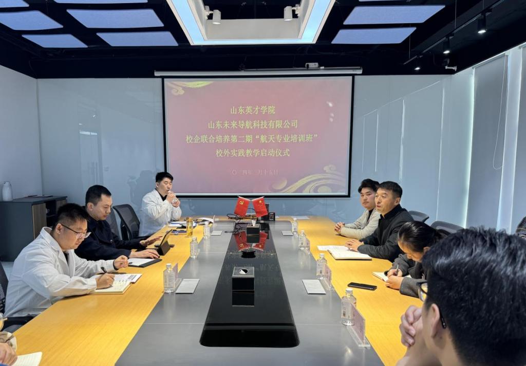 為堅持黨的領(lǐng)導(dǎo),高度重視我國航天事業(yè)發(fā)展,深度推進校企產(chǎn)教融合,2024年3月15日上午9點,山東英才學(xué)院與山東未來導(dǎo)航科技有限公司校企聯(lián)合培養(yǎng)的第二期“航天專業(yè)培訓(xùn)班”校外實踐教學(xué)啟動儀式在山東未來導(dǎo)航科技有限公司順利舉行。山東未來導(dǎo)航科技有限公司運控系統(tǒng)總師孫劍偉、質(zhì)量技術(shù)總監(jiān)王如龍、行政經(jīng)理劉強、系統(tǒng)運管主管蘆京新,山東英才學(xué)院工學(xué)院院長田恒義、副院長蔣麗麗、輔導(dǎo)員李樹林及教師代表劉伊與14名“航天班”學(xué)生在企業(yè)場參加了本次培訓(xùn)班的啟動儀式。同時企業(yè)的人事經(jīng)理黃潔星及系統(tǒng)運管總監(jiān)劉景勇通過線上方式參與了此次活動。