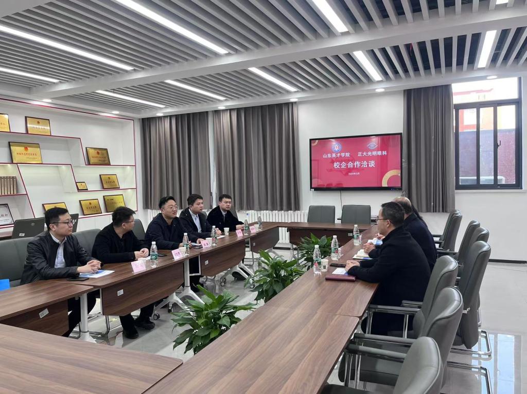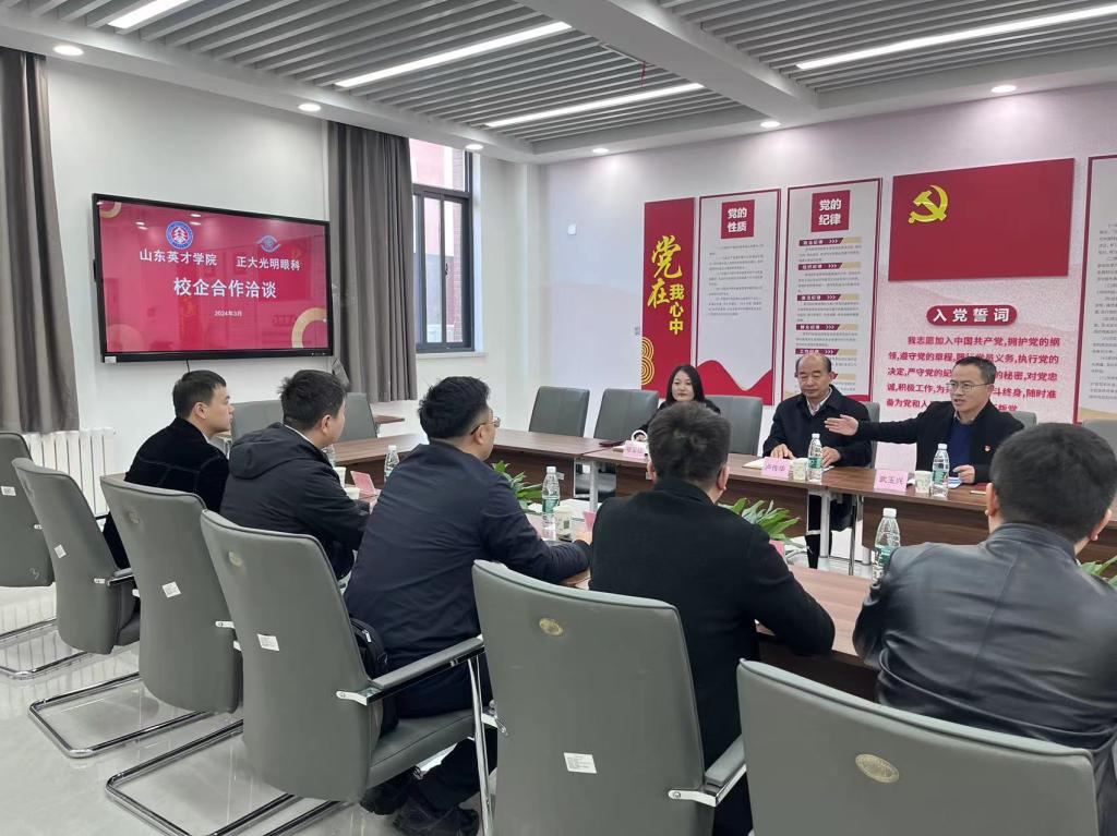 為進一步加強校企合作,實現(xiàn)校企資源共享、優(yōu)勢互補,打通學院與企業(yè)人才需求通道。3月15日,醫(yī)學院于221黨員活動室開展與正大光明眼科集團校企合作洽談會,淄博正大光明眼科醫(yī)院院長趙鑫、健康服務(wù)中心主任賀志恩、人力資源主任花文,新泰正大光明眼科醫(yī)院院長王彬,濟南正大光明眼科醫(yī)院人力資源中心主任周昊冉一行來訪我院。醫(yī)學院院長盧傳華、專職書記武玉興、就業(yè)工作負責人張亞紅共同接待。