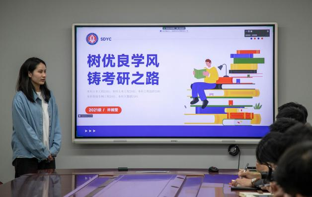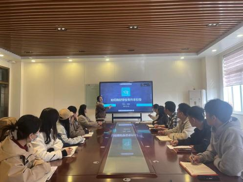 許婉瑩老師以“樹優(yōu)良學(xué)風(fēng)·鑄考研之路”為題,以其往屆學(xué)生考研的成功例子導(dǎo)入主題班會,通過事例樹立學(xué)生的自信心,讓學(xué)生們對考研有了初步的了解。