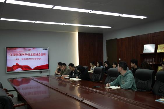 為有效提升輔導(dǎo)員思政育人水平,政治理論宣講水平,主題班會教學(xué)水平,3月26日14:00,工學(xué)院全體輔導(dǎo)員(北校區(qū)線上)在工學(xué)院3021圍繞“如何做好學(xué)生升學(xué)引導(dǎo)”開展主題班會磨課。