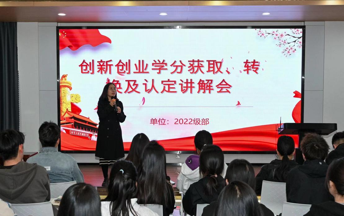 此次培訓會議由王瑩瑩老師主持,王老師就創(chuàng)新創(chuàng)業(yè)學分認定的相關政策、標準、學分認定程序和學分認定項目進行了詳細解讀和說明。同時強調了創(chuàng)新創(chuàng)業(yè)實踐學分在人才培養(yǎng)方案中的重要地位,鼓勵同學們積極參與各類創(chuàng)新創(chuàng)業(yè)活動,爭取更多的學分認定。