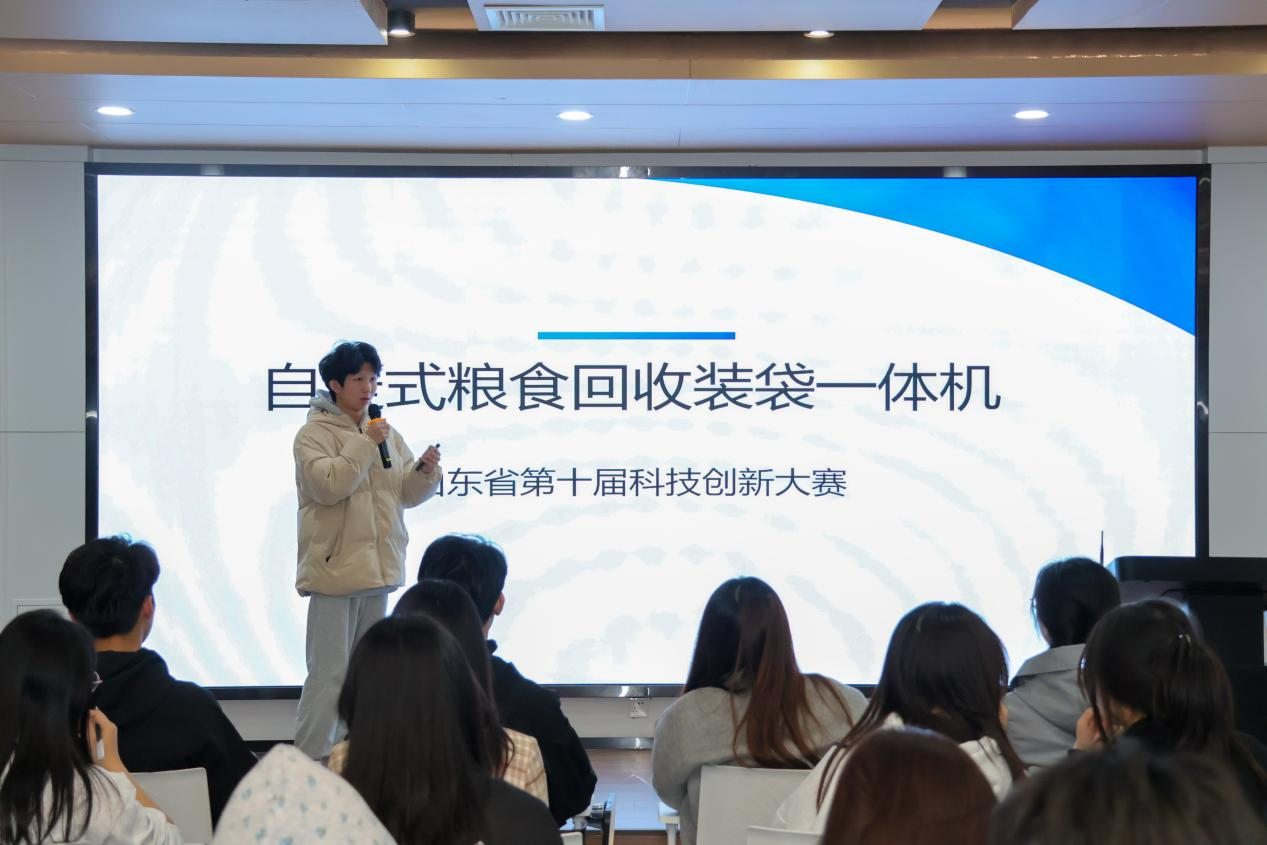 李杜鵬同學(xué)以流水線輔助送料機(jī)構(gòu)、車載樹干涂白機(jī)、高效智能消毒機(jī)器人的設(shè)計(jì)原理為切入點(diǎn),詳細(xì)跟同學(xué)們分享了如何制作大賽PPT、制作項(xiàng)目時(shí)的設(shè)計(jì)理念“增減合”“TRIZ理念”等,為同學(xué)們提供了創(chuàng)新創(chuàng)業(yè)新思路。