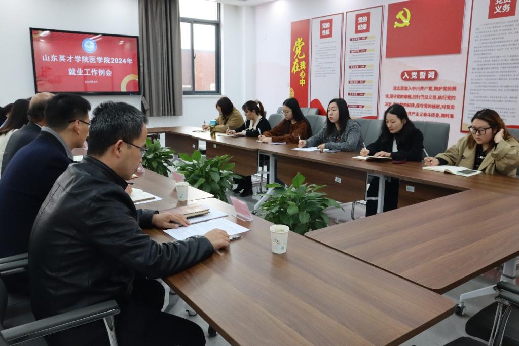 為貫徹落實(shí)學(xué)校就業(yè)工作會(huì)議精神,切實(shí)保障畢業(yè)生平穩(wěn)就業(yè)、高質(zhì)量充分就業(yè)。3月28日,醫(yī)學(xué)院于醫(yī)學(xué)樓黨員活動(dòng)室召開2024屆就業(yè)工作例會(huì)。醫(yī)學(xué)院院長盧傳華、黨總支書記武玉興、教學(xué)副院長王世芳、畢業(yè)年級(jí)長及各教研室主任參加,山東英才學(xué)院黨委副書記、工會(huì)主席孫玉香,招生就業(yè)處處長辛偉、副處長尹遜坤蒞臨指導(dǎo)并做工作解答。