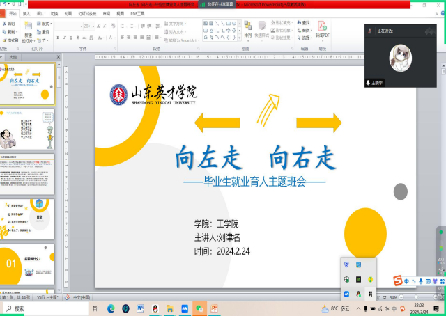 為了更好落實學(xué)校對畢業(yè)生就業(yè)工作的指示要求,讓學(xué)生充分認(rèn)清就業(yè)形勢,轉(zhuǎn)變就業(yè)觀念,樹立“先就業(yè)、再擇業(yè)”的就業(yè)觀,3月24日晚,工學(xué)院全體2024屆畢業(yè)班老師組織召開“向左走,向右走---就業(yè)育人“主題班會。