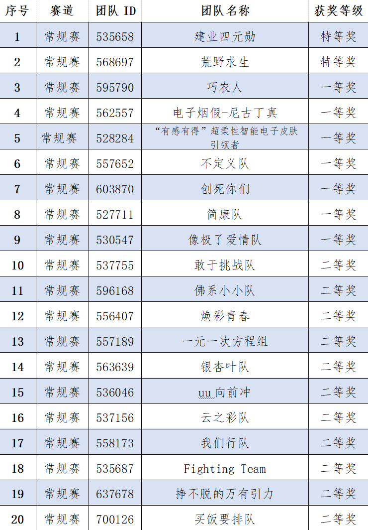 本次三創(chuàng)賽,常規(guī)賽道共產(chǎn)生特等獎團隊二支、一等獎團隊七支、二等獎團隊十七支,實戰(zhàn)賽道共產(chǎn)生一等獎團隊二支,二等獎團隊一支。