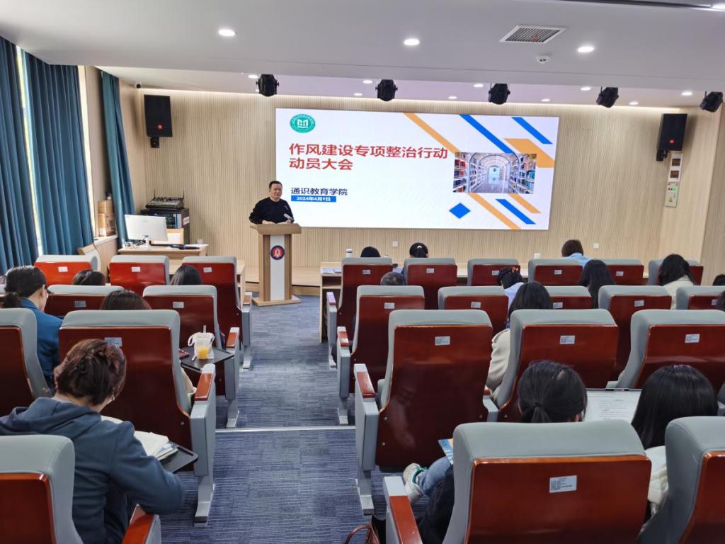 為全面加強(qiáng)作風(fēng)建設(shè),進(jìn)一步推進(jìn)工作效能,通識(shí)教育學(xué)院于4月9日上午在英才講堂舉行了作風(fēng)建設(shè)專項(xiàng)整治行動(dòng)動(dòng)員大會(huì)。通識(shí)教育學(xué)院院長龍新良主持會(huì)議,通識(shí)教育學(xué)院全體教師參加本次大會(huì)。