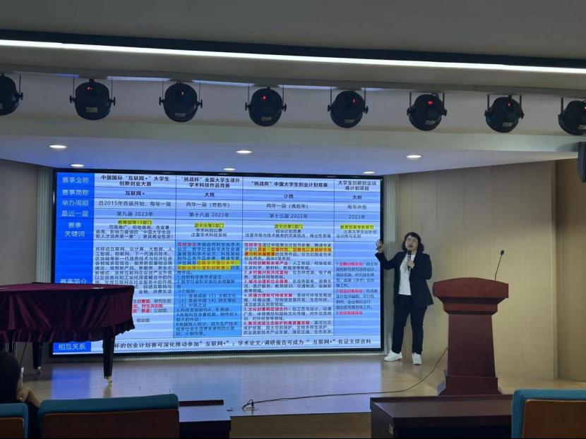 王素玲老師以“挑戰(zhàn)杯”“互聯(lián)網(wǎng)+”“科創(chuàng)”和“大創(chuàng)”的創(chuàng)新創(chuàng)業(yè)大賽為例詳細(xì)介紹了各類創(chuàng)新創(chuàng)業(yè)大賽的備賽重點(diǎn)和評審要點(diǎn),依據(jù)自身專業(yè)的特點(diǎn),明確發(fā)展目標(biāo),要能想、敢想、能干、會(huì)干,在未來的職業(yè)生涯中克服傳統(tǒng)思維,運(yùn)用創(chuàng)新思維,不斷地提升自己。