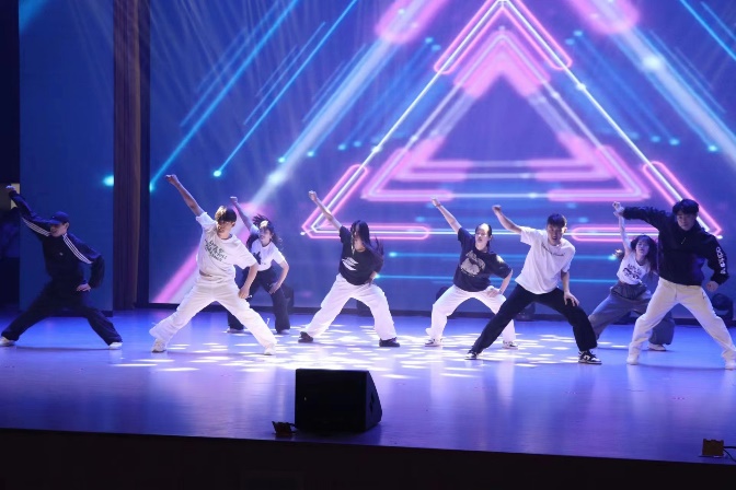 開場(chǎng)《節(jié)奏狂舞》通過巧妙的燈光變換和激昂的音樂,為觀眾營(yíng)造一個(gè)充滿神秘感和期待感的氛圍。隨著音樂的節(jié)奏,舞者從舞臺(tái)的不同位置逐一入場(chǎng),迅速聚集在舞臺(tái)中央。