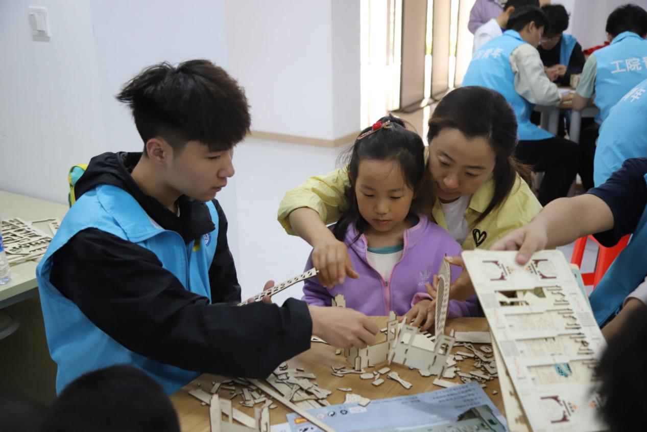 為豐富小朋友們的課余生活,培養(yǎng)他們的創(chuàng)造力、邏輯思維能力、實際操作能力和創(chuàng)新精神,幫助小朋友們更好地認識和了解建筑文化,讓他們感受技術(shù)精湛和工匠精神帶來的震撼。4月21日,工學(xué)院“智能建造”實踐團赴濟南翡翠雅郡社區(qū)開展“慧心巧手度周末·3D拼圖我來做”社區(qū)實踐活動。