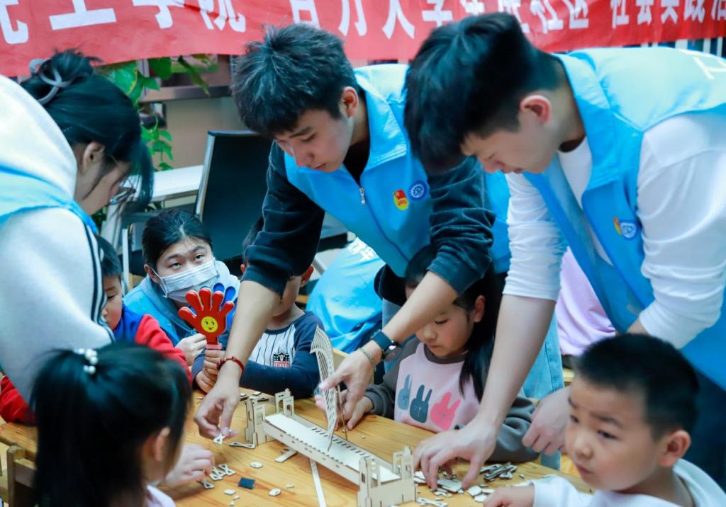 為鼓勵(lì)大學(xué)生志愿者積極參與百萬(wàn)大學(xué)進(jìn)社區(qū)活動(dòng),向社區(qū)基層注入青春活力,切實(shí)提高大學(xué)生社會(huì)責(zé)任感和公共意識(shí),4月24日,工學(xué)院赴新東佳苑幼兒園開(kāi)展“智慧工坊”課堂活動(dòng)。