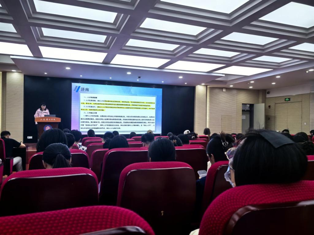 同時,為同學(xué)們講解了就業(yè)辦理手續(xù)、山東省人才引進(jìn)政策、就業(yè)權(quán)益保護(hù)等內(nèi)容,通過實(shí)例解析了行業(yè)的需求和對個人能力的要求,幫助畢業(yè)生更好地瞄準(zhǔn)用人單位的期望。