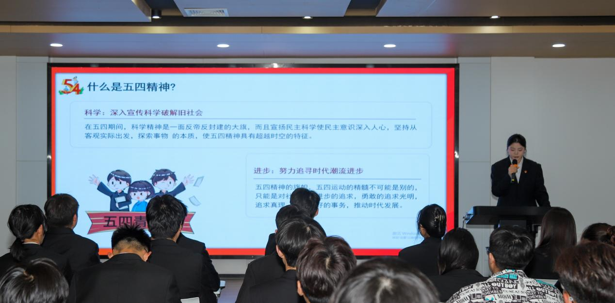 活動伊始,主持人以五四運動為引,深入淺出地闡述了五四精神的內涵和時代價值,強調同學們應打牢理想信念根基,掌握理想信念精髓,追根溯源,探尋五四精神,鼓勵同學們繼承和發(fā)揚五四精神,勇做新時代的奮進者、開拓者、奉獻者。