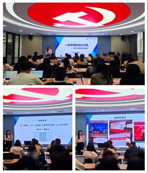 張偉麗老師以“一名青椒的成長(zhǎng)之路——教學(xué)比賽的經(jīng)驗(yàn)與感悟”為主題開展此次報(bào)告會(huì)。首先,張偉麗老師分享了自己參加山東首屆高校思想政治理論課“萌新磨課會(huì)”,山東師范大學(xué)第十一屆青年教學(xué)比賽以及剛過去的2024年山東省青年教師教學(xué)比賽復(fù)賽的經(jīng)歷、收獲與成長(zhǎng)。張老師表示,雖然參加比賽的過程中有過迷茫和煎熬,但付出一定會(huì)有收獲,相信“相信”的力量,終會(huì)“輕舟已過萬重山”。