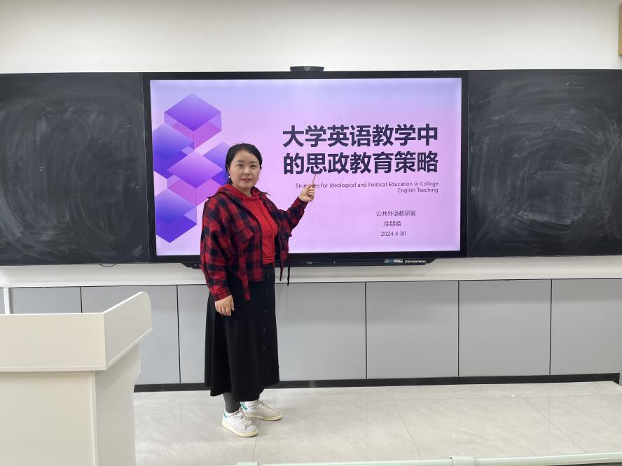 徐朋煥老師緊密圍繞教研主題,從大學(xué)英語教學(xué)中的思政教育策略切入,詳細(xì)闡述了思政教育與英語教學(xué)的融合策略、思政教育理念的引領(lǐng)、思政教育的內(nèi)容體系、思政教育方法與創(chuàng)新,以及英語教學(xué)與思政成果的融合展示。徐老師深入探討了如何結(jié)合大學(xué)英語的學(xué)科特性,設(shè)計(jì)富有趣味性的思政教育內(nèi)容,并分享了將思政元素有效融入公共外語課程教學(xué)的實(shí)踐經(jīng)驗(yàn)。