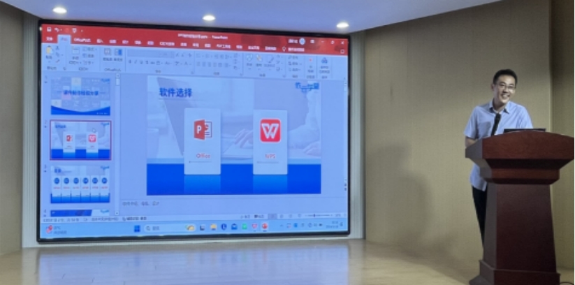 “工欲善其事,必先利其器”,為充分發(fā)揮多媒體課件在教育教學(xué)活動(dòng)中的作用,提高教師多媒體課件制作水平,解決教師在課件制作中存在的問(wèn)題,促進(jìn)人才培養(yǎng)水平和教學(xué)質(zhì)量全面提升。5月16日中午,我院在藝體中心多功能廳舉辦PPT課件制作技巧與經(jīng)驗(yàn)分享主題講座,本次講座聘請(qǐng)北京依云科創(chuàng)教育科技有限公司技術(shù)總監(jiān)康寧主講,全體青年教師參加。