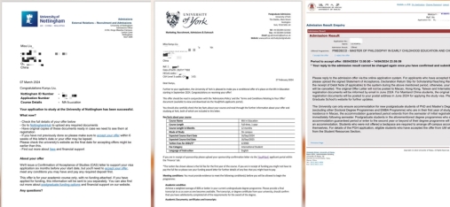 擬錄取院校:目前收到澳門大學(xué)、約克大學(xué)、諾丁漢大學(xué)等多所學(xué)校的錄取通知書