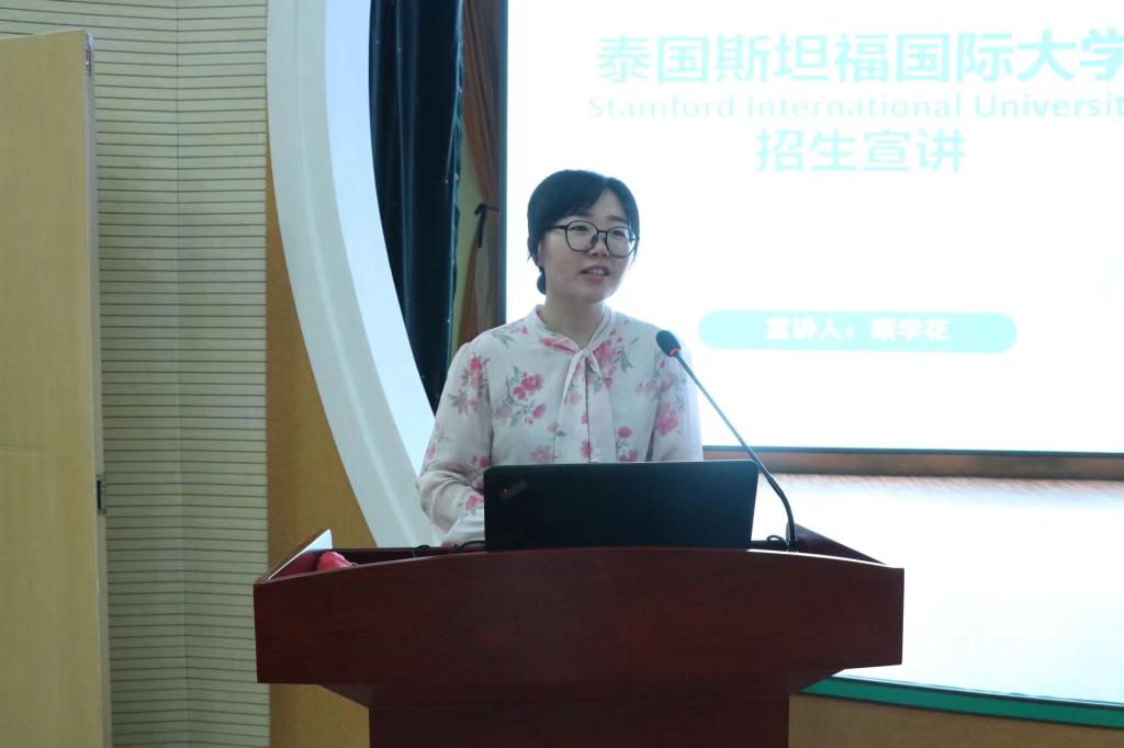 為了豐富學前教育學院同學們的國際視野,拓寬升學渠道,并幫助他們更好地了解海外名校的留學申請流程,5月22日,學前教育學院于學前樓小劇場開展泰國斯坦福國際大學招生政策宣講,此次會議由學生工作處思政科科長顧學花主講,學前教育學院2025屆班級輔導員、2025屆預畢業(yè)生及2024屆畢業(yè)生共同參加,學前教育學院團委書記王林林主持會議。