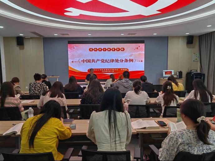 為切實(shí)增強(qiáng)全院黨員教師紀(jì)律意識(shí)、規(guī)矩意識(shí)、底線(xiàn)意識(shí),推動(dòng)黨紀(jì)學(xué)習(xí)教育走深走實(shí),5月21日中午,馬克思主義學(xué)院直屬黨支部書(shū)記李朝源為全體黨員講授紀(jì)律黨課。黨課教育活動(dòng)由支部紀(jì)檢委員常志剛主持,全體黨員和入黨積極分子認(rèn)真聆聽(tīng)了紀(jì)律黨課。