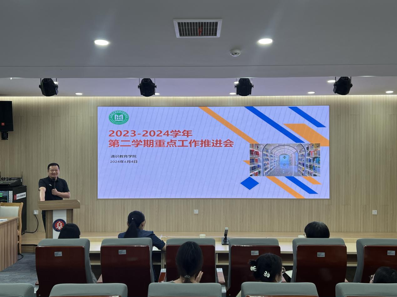 為進(jìn)一步推動(dòng)2023-2024學(xué)年第二學(xué)期全院重點(diǎn)工作進(jìn)行,6月4日,通識(shí)教育學(xué)院召開(kāi)重點(diǎn)工作推進(jìn)會(huì)。通識(shí)教育學(xué)院院長(zhǎng)龍新良作主持會(huì)議,通識(shí)教育學(xué)院全體教師參加會(huì)議。