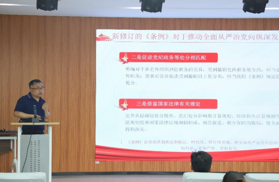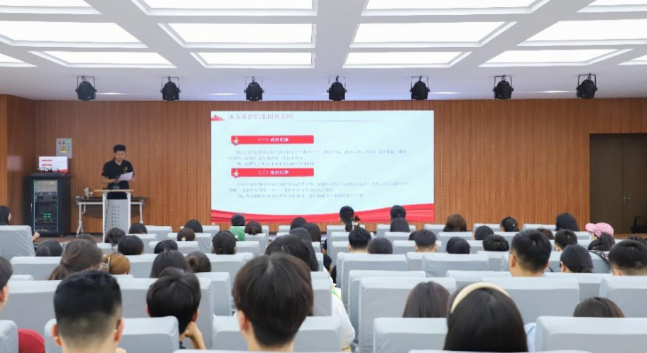 商學(xué)院黨總支副書(shū)記徐宜慧從政治紀(jì)律、組織紀(jì)律、廉潔紀(jì)律、群眾紀(jì)律、工作紀(jì)律、生活紀(jì)律等六個(gè)方面解讀了黨的紀(jì)律和違反黨的紀(jì)律相關(guān)案例。徐宜慧同志進(jìn)一步強(qiáng)調(diào),作為黨員教師要關(guān)心愛(ài)護(hù)學(xué)生、堅(jiān)持言行雅正、堅(jiān)守廉潔自律、規(guī)范從教行為、秉持公平誠(chéng)信、傳播優(yōu)秀文化。
