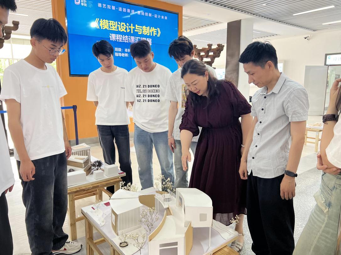副院長郝瑩對課程成果匯報展覽高度重視,對同學(xué)們的作品表示贊賞,肯定了學(xué)生們在模型制作過程中表現(xiàn)出了極高的專業(yè)素養(yǎng)和創(chuàng)新能力。此外,還與同學(xué)們進(jìn)行了交流,分享了在建筑領(lǐng)域的經(jīng)驗(yàn)和見解,為同學(xué)們提供了寶貴的反饋和建議。